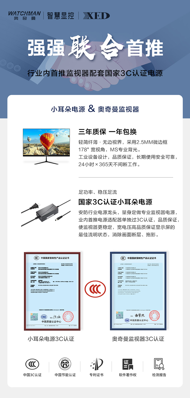行業內首推監視器配套國家3C認證電源