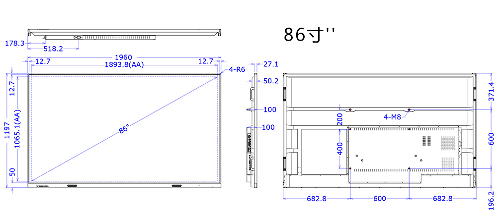 側置接口:USB3.0輸入≥1,USB2.0輸入≥1,Touch USB≥1,OPS接口≥1,