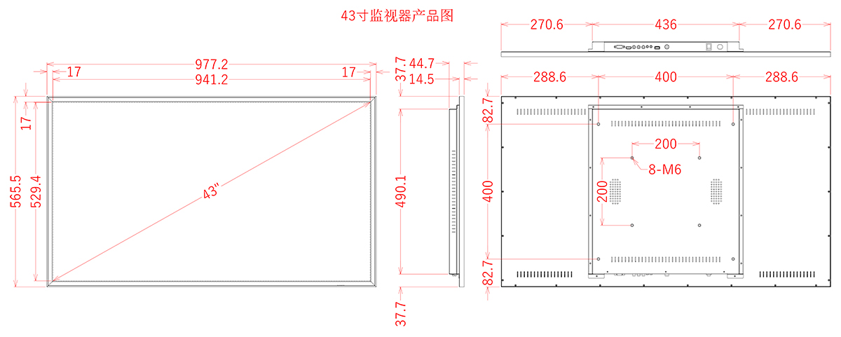 監視器尺寸(mm):977.2mm(W)×566.5mm(H)×44.7mm(D)不含底座