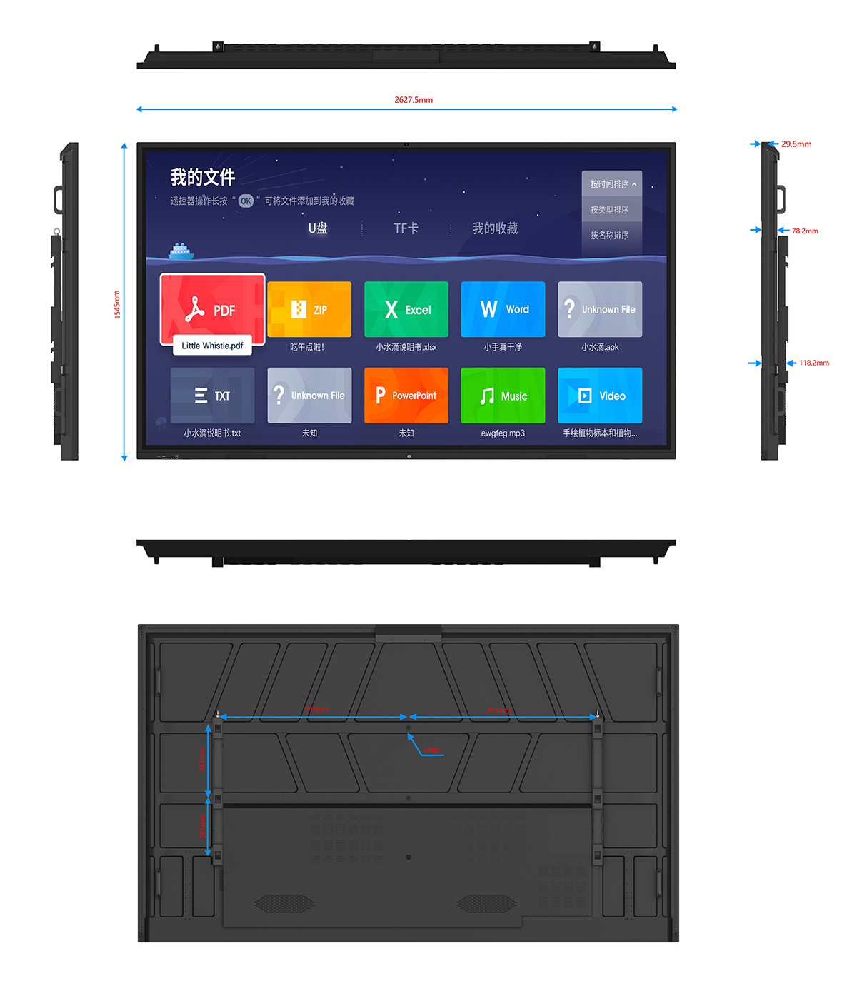 2627.5mm*130mm*1545mm (產品外形對角線尺寸:120寸) |