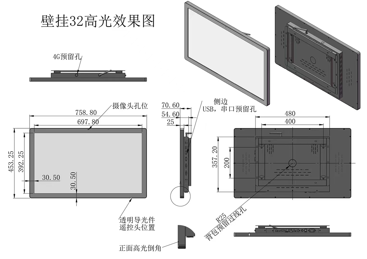32寸壁掛廣告機觸摸紅外款 / 觸摸電容款 / 非觸摸款